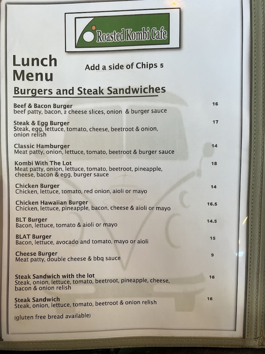 The menu at Roasted Kombi is a treasure trove for lovers of hearty, comforting fare. If you’re in the mood for breakfast, you can’t go wrong with their Big Breaky (A$22.50), a generous plate showcasing the best of breakfast delights, or the Eggs Benedict (A$21.50) that perfectly balances rich hollandaise sauce with fresh poached eggs. Veggie lovers will appreciate the Vegi Burger, which packs a punch with its flavorful ingredients. For a special treat, consider indulging in their Belgian Waffles (A$19.50), where every bite is a sweet, fluffy delight sure to brighten your day.